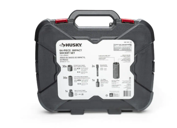 • Set includes one 1/2 in. impact extension bars one 1/2 in. to 3/8 in. drive impact adapter one 1/2 in. drive impact universal joint, 30 standard impact sockets – SAE: 3/8 in. to 1-5/16 in. and metric: 13 mm to 27 mm 30 deep impact sockets: SAE – 3/8 in. to 1-5/16 in. and metric – 13 mm to 27 mm