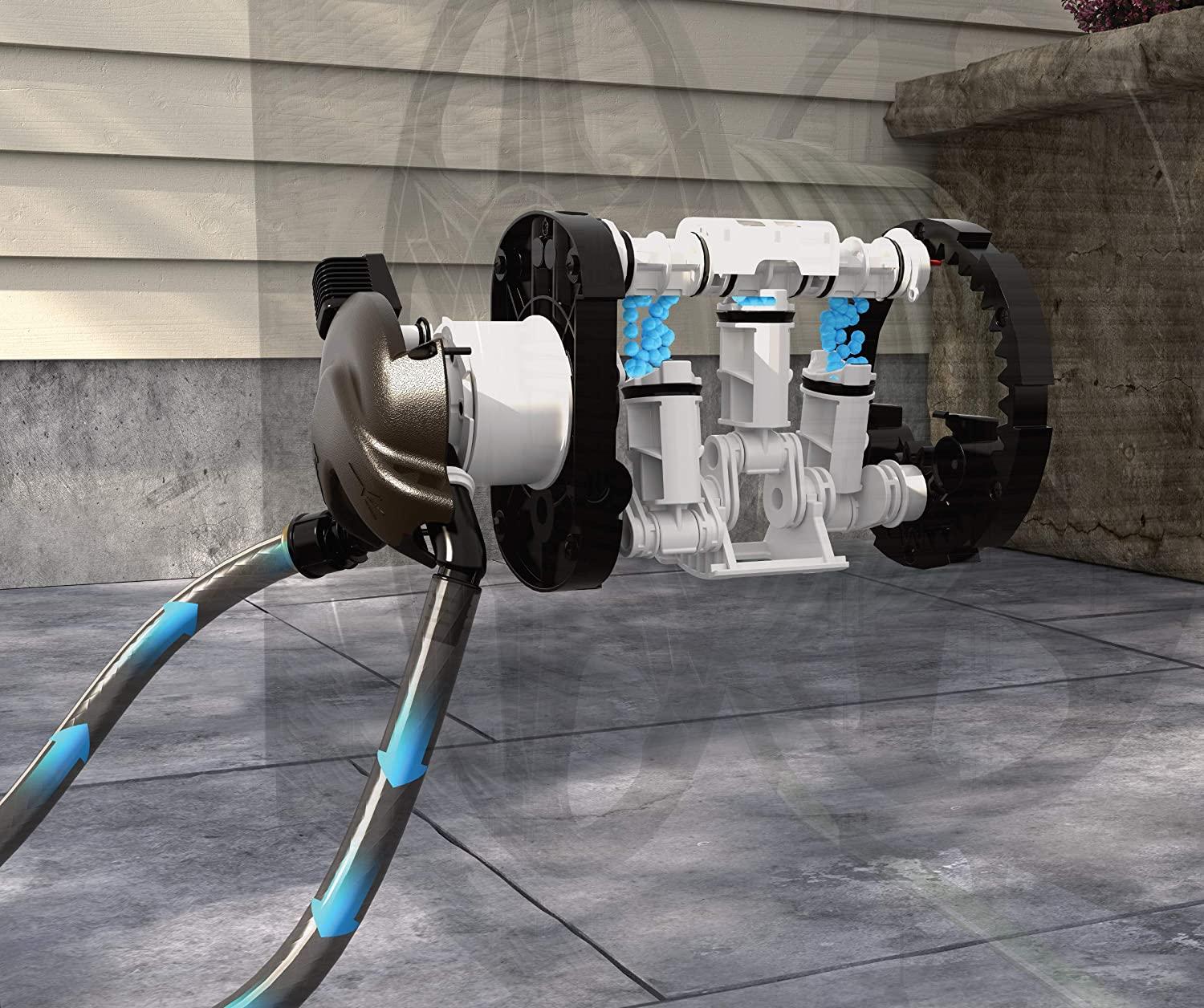 - HANDS FREE: To rewind the hose, simply press a lever and it automatically reels in!
